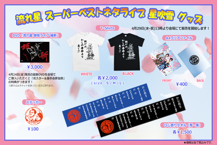 4/29(水・祝)「流れ星 スーパーベストネタライブ 星吹雪」のグッズラインナップ発表!